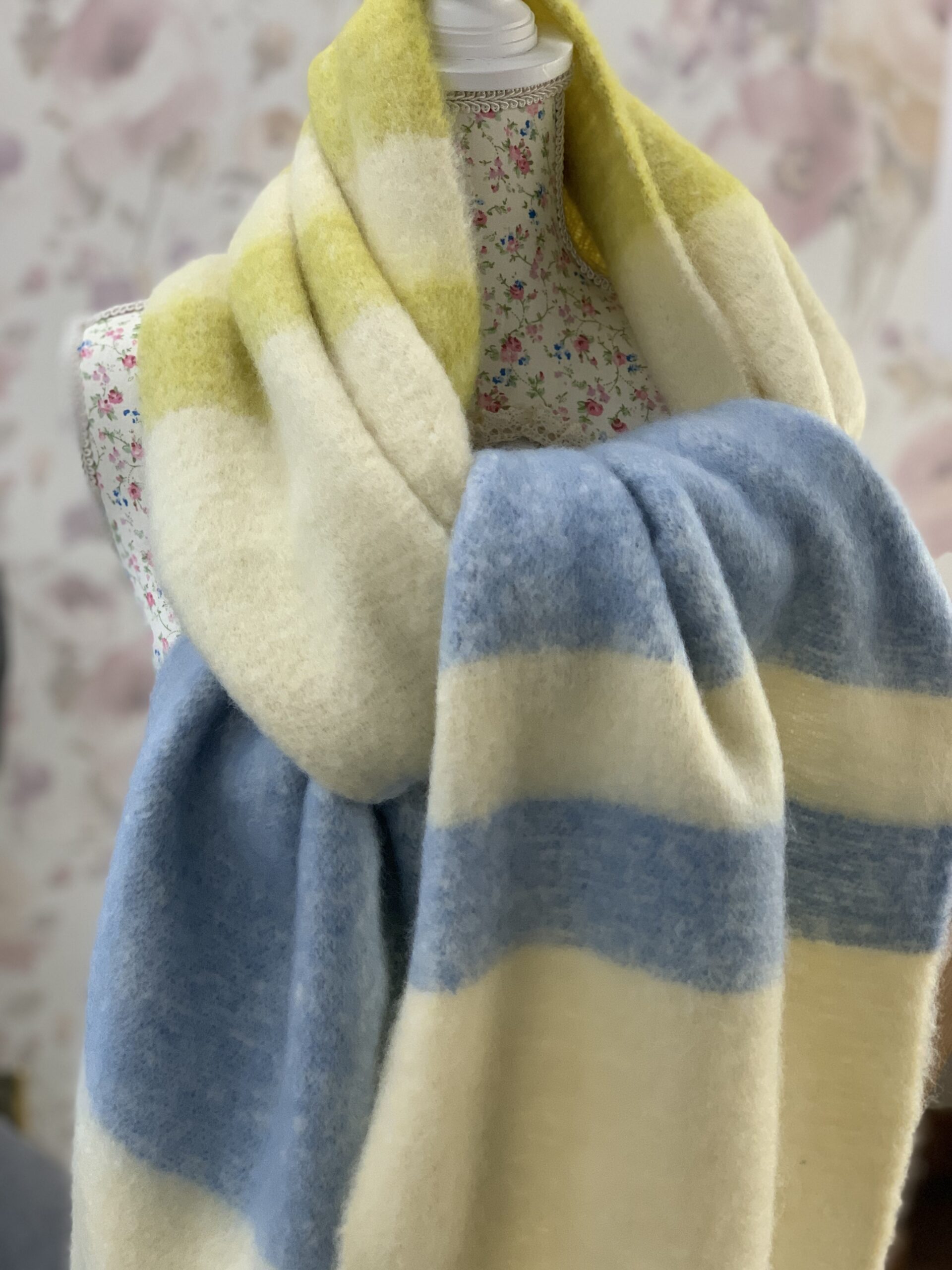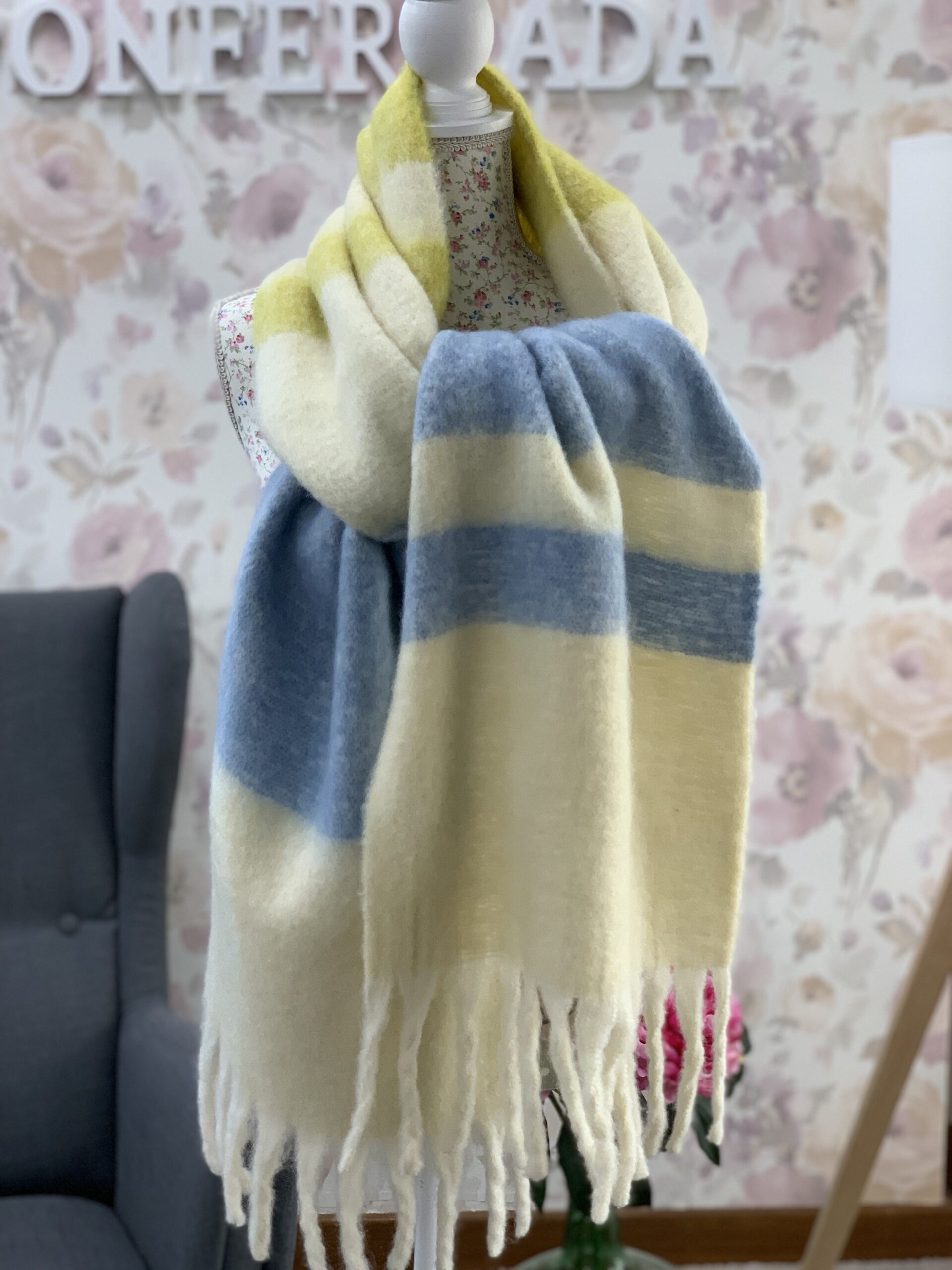 DONATZELLI bufanda larga con flecos color azul celesta y lima